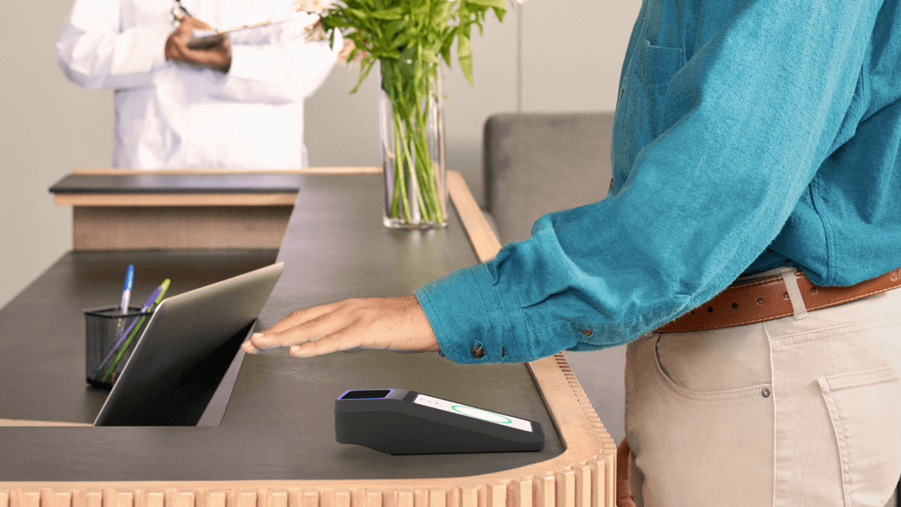 Patient check-in: No forms. No delays. A simple wave of the hand verifies identity and links to the right medical record.