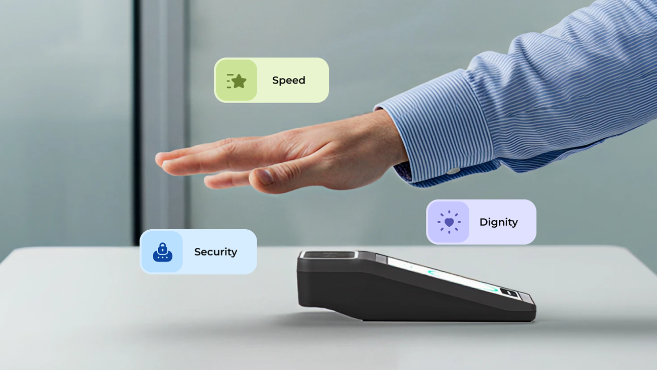 Move from visual matching to biometric presence. Replace “Does this photo look like you?” with “Please present your palm.” The answer is clear, fast, and auditable.